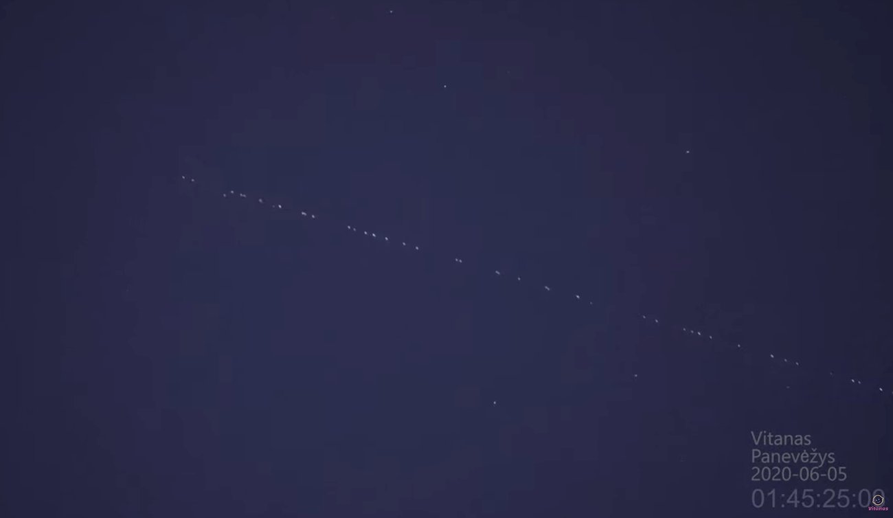 Od maja 2019 rok u firma SpaceX umieszcza swoją megakonstelację satelitów Starlink na orbicie. Docelowo aż 12 tysięcy satelitów Starlink ma się znaleźć na orbicie. Jest to wartość porównywalna z całkowitą ilością wszystkich obiektów, jakie obecnie znajdują się na różnych orbitach wokół Ziemi, włączając w to większe “śmieci kosmiczne”. Oprócz SpaceX inne firmy planują także umieszczenie setek satelitów na orbicie dla celów telekomunikacyjnych – przykładem może być OneWeb – pierwsza generacja ma składać się z 648 satelitów (jest jednak możliwe że ta firma niebawem zakończy działalność).Czwartego czerwca 2020 nastąpił start ósmej paczki satelitów Starlink. Lot zakończył się sukcesem i wszystkie 60 satelitów zostało umieszczonych na wstępnej orbicie okołoziemskiej. Start odbył się nad ranem (czasu europejskiego) i około 20 minut po starcie pojawiły się pierwsze raporty z obserwacji. W nocy z 4 na 5 czerwca nastąpiły kolejne przeloty tej paczki satelitów Starlink, które były obserwowane w dużej części Europy – w tym i Polski. Poniższe nagrania prezentują przeloty najnowszej paczki satelitów Starlink.