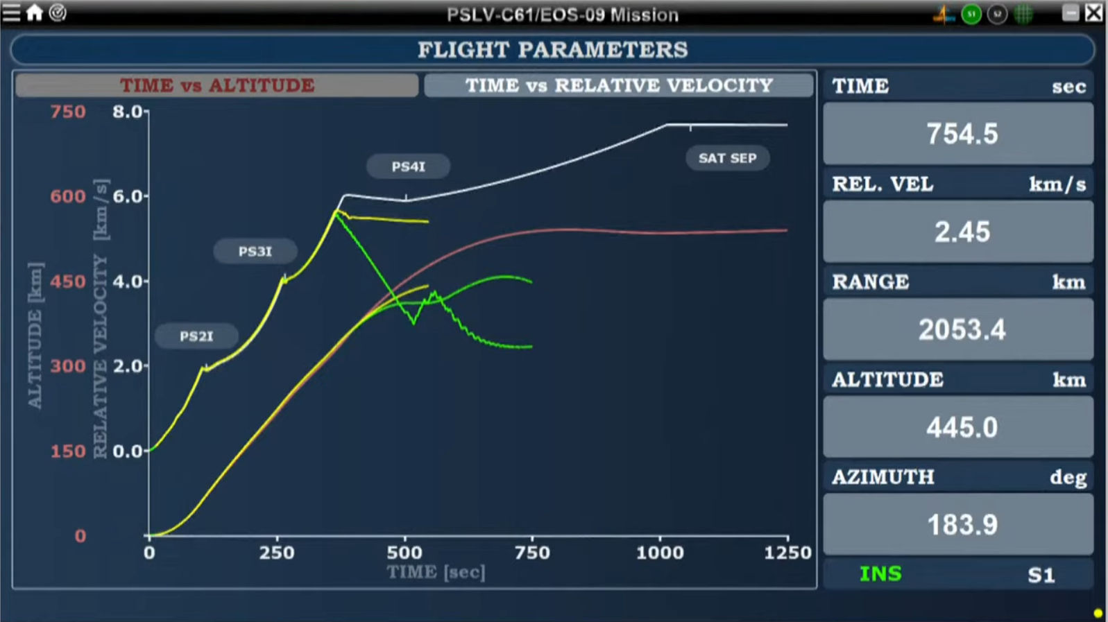 Przebieg lotu do końca pracy drugiego stopnia był prawidłowy. Uruchomienie trzeciego stopnia także było prawidłowe. Jednakże, w trakcie pracy trzeciego stopnia doszło do wyraźnego odchylenia trajektorii lotu od zakładanej. Misja została utracona. ISRO potwierdziła nieudany start.