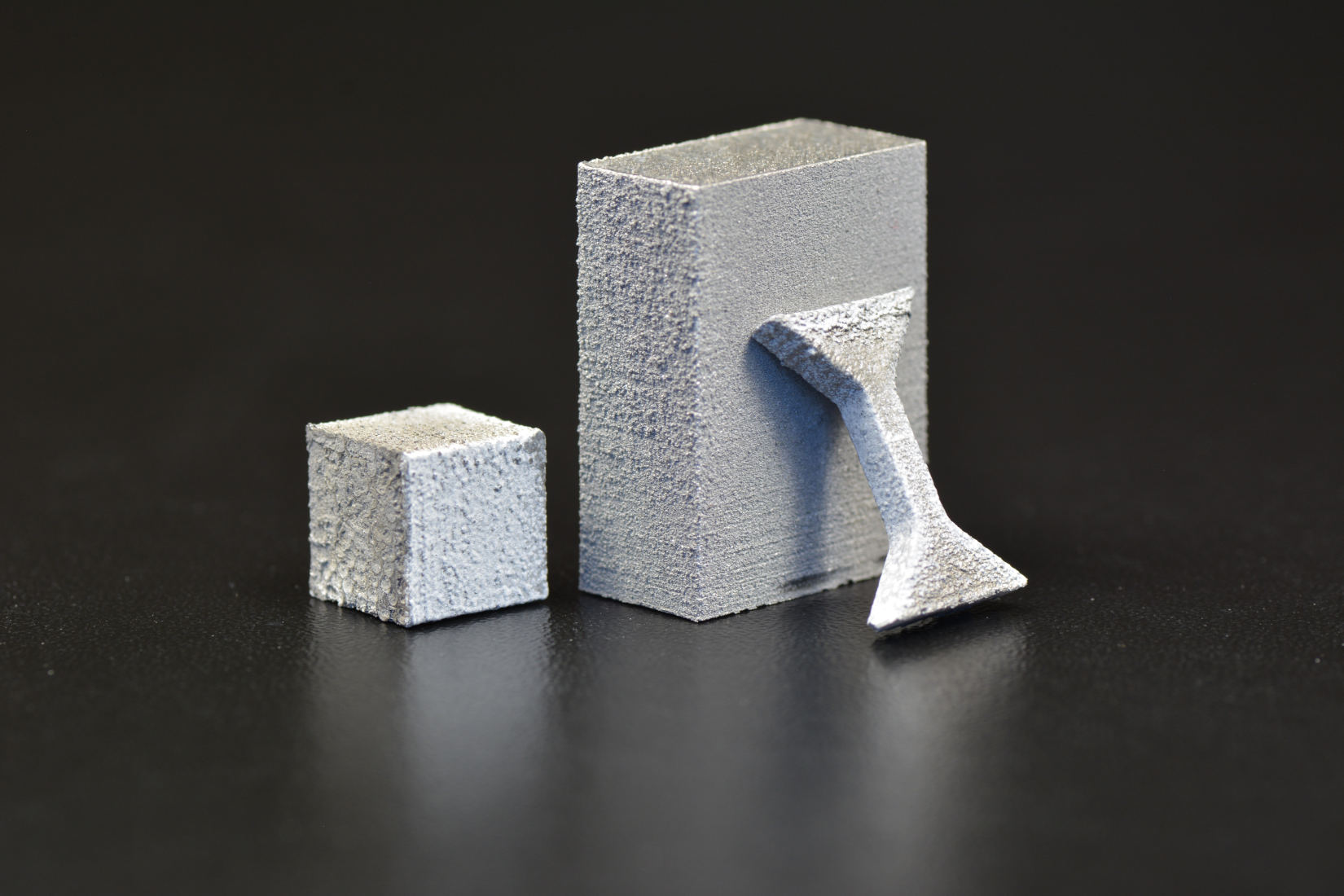 Próbki ze stopu magnezu 95%AZ91E+5%Ti6Al4V wytworzone w technologii SLM (Selektywne topienie laserowe) / Credits – Sieć Badawcza Łukasiewicz – Krakowski Instytut Technologiczny w Krakowie