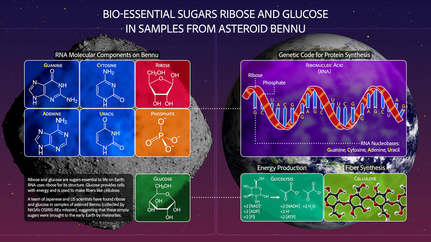 Zarówno ryboza jak i glukoza odgrywają ważną rolę dla życia. Te dwa cukry są ważne dla cząsteczek RNA i DNA. Co więcej, wcześniej w próbkach z planetoidy Bennu wykryto zasady nukleinowe (nukleobazy) oraz fosforany, które wraz z wykrytymi cukrami stanowią “cegiełki” dla budowy RNA i DNA.